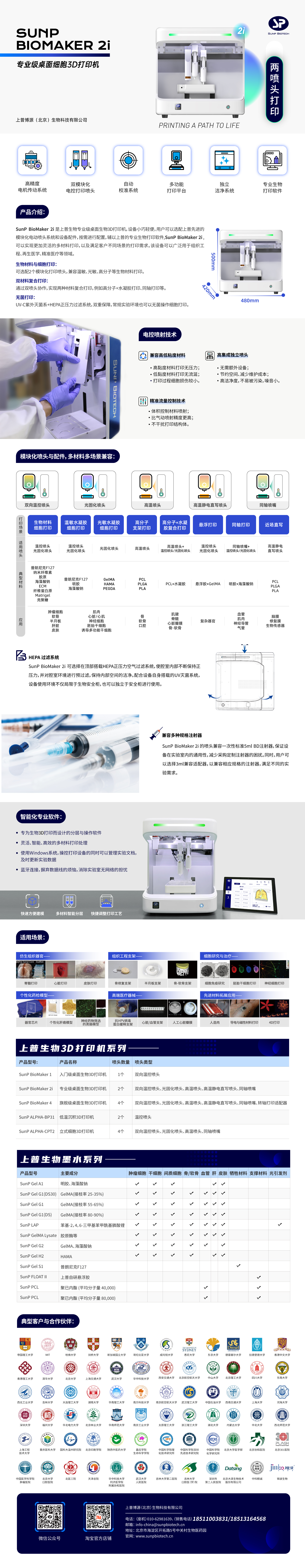 SunP BioMaker 2i 是上普生物專業(yè)級(jí)雙噴頭桌面級(jí)生物3D打印機(jī),通過搭載2個(gè)模塊化打印噴頭,無論是水凝膠細(xì)胞打印、高分子支架打印還是雙材料復(fù)合打印,都可以輕松勝任。